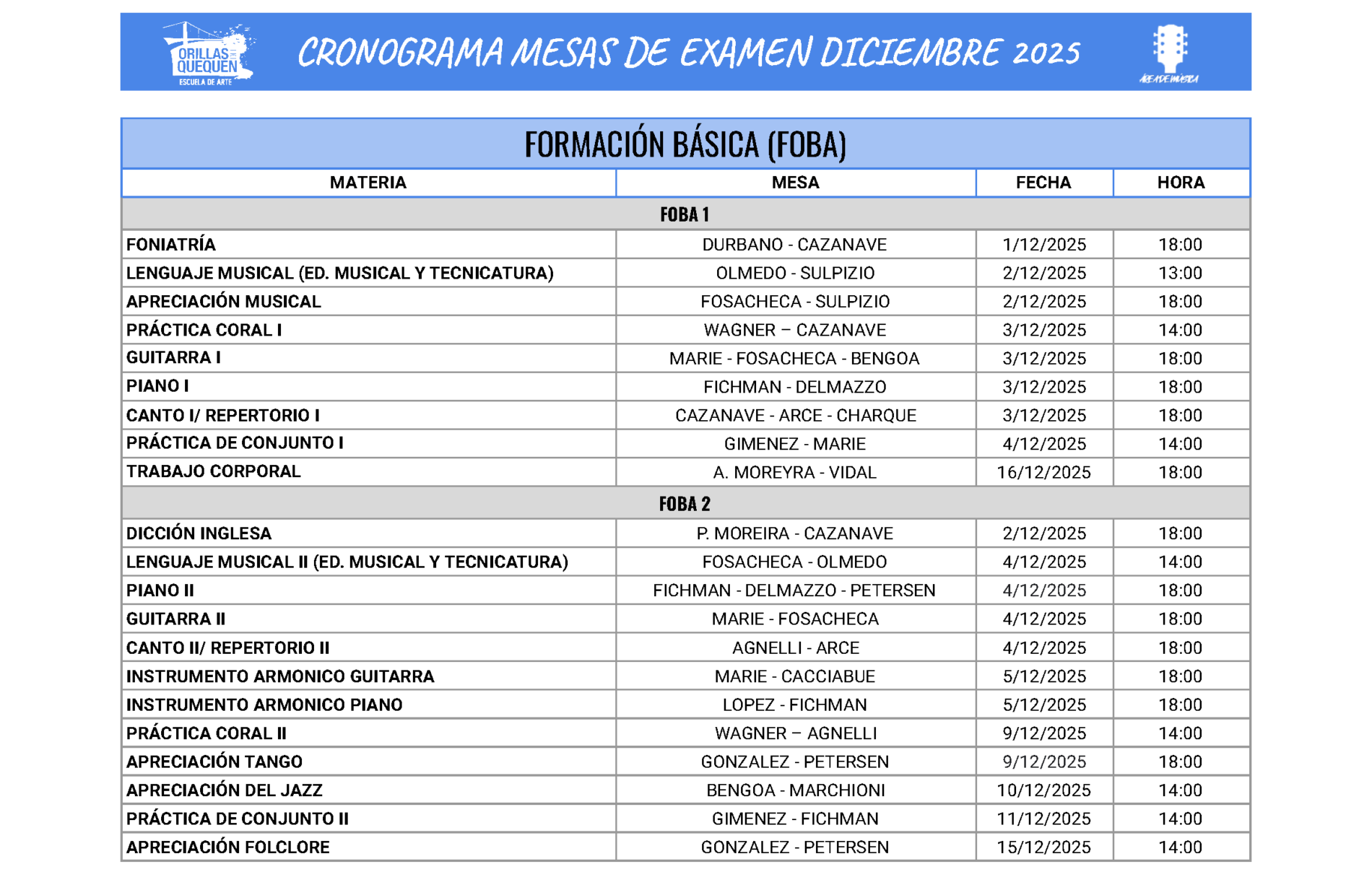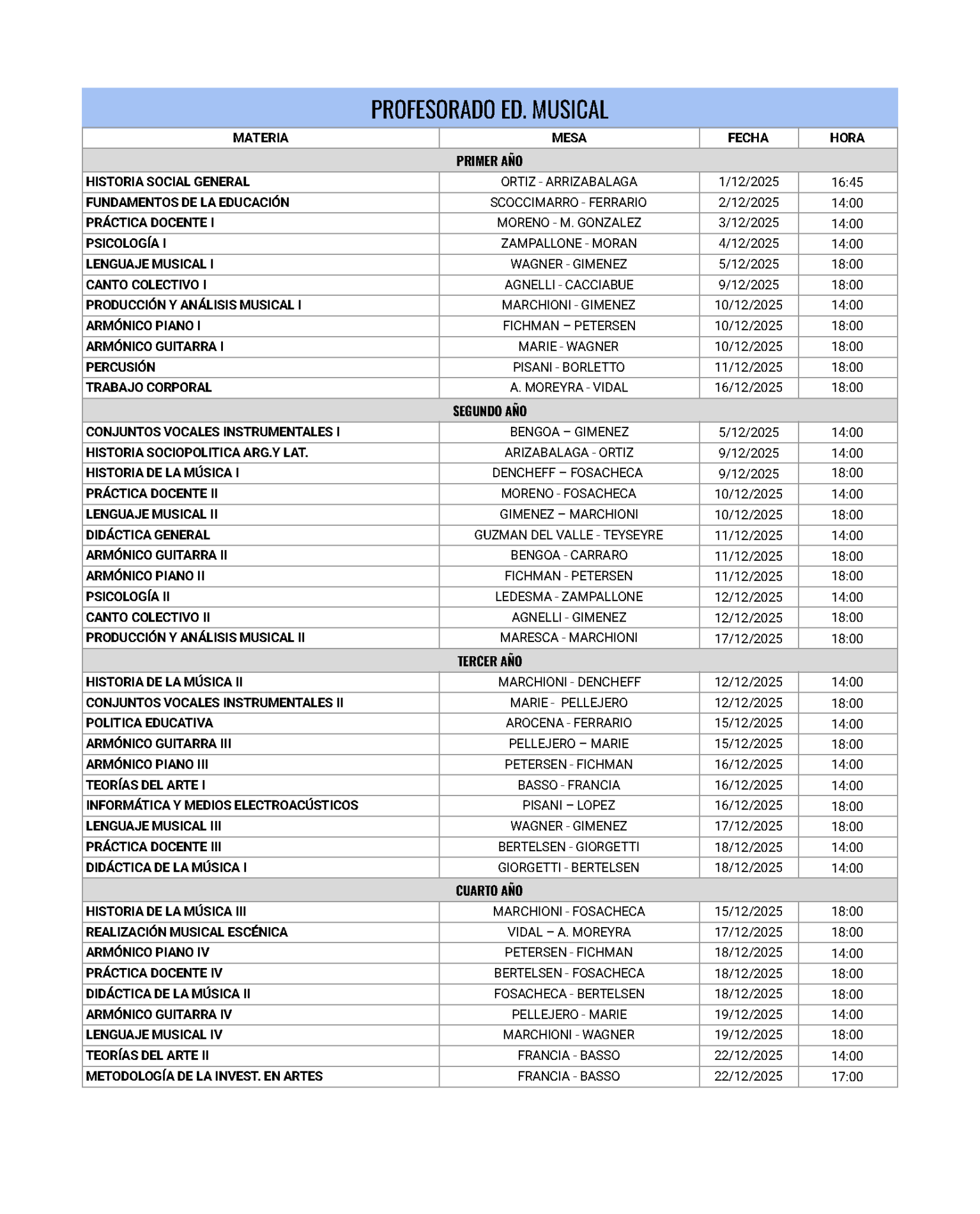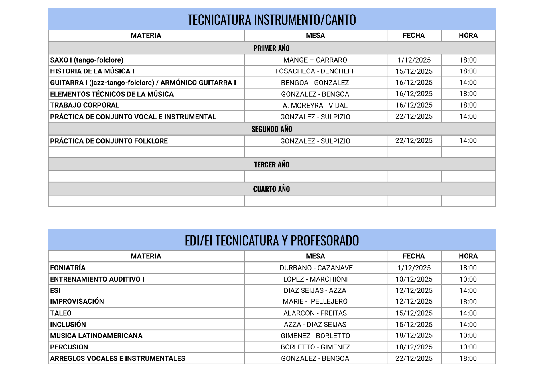 Mesas de Examen | DICIEMBRE 2025 | Estudiantes